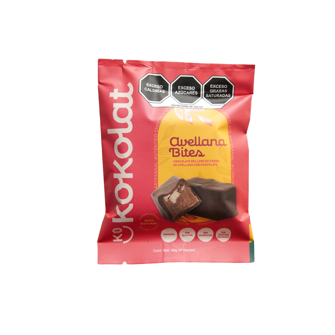 Avellana Bites son puro amor en forma de chocolate. Están hechos con chocolate artesanal bean to bar y rellenos de una cremosa mezcla estilo Nutella vegana, elaborada en casa con avellanas naturales y nuestro propio chocolate oscuro. Para el toque final, agregamos trozos de avellana crujiente que aportan textura y un sabor irresistible.